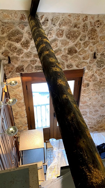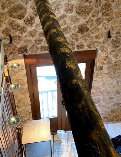 Las casas rurales suelen contar con vigas, techos y otros elementos de madera que, además de aportar calidez y carácter, pueden verse afectados por plagas de insectos xilófagos como la carcoma. En este caso, aplicamos un tratamiento profesional por inyección, el mismo sistema utilizado en otros proyectos similares, adaptado para eliminar la plaga desde el interior de la madera y ofrecer una protección duradera.